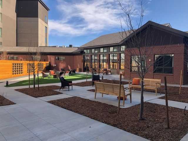 Like all Anthology Senior Living communities, there are high-end finishes throughout, like stainless steel appliances and fixtures, quartz countertops, tile backsplashes, decorative sconces and recessed lighting, and common areas designed for engaging with other residents and visitors. Outdoor amenities include 3.5 acres of green space, a sky lounge, patios, a garden, walking paths and terraces.