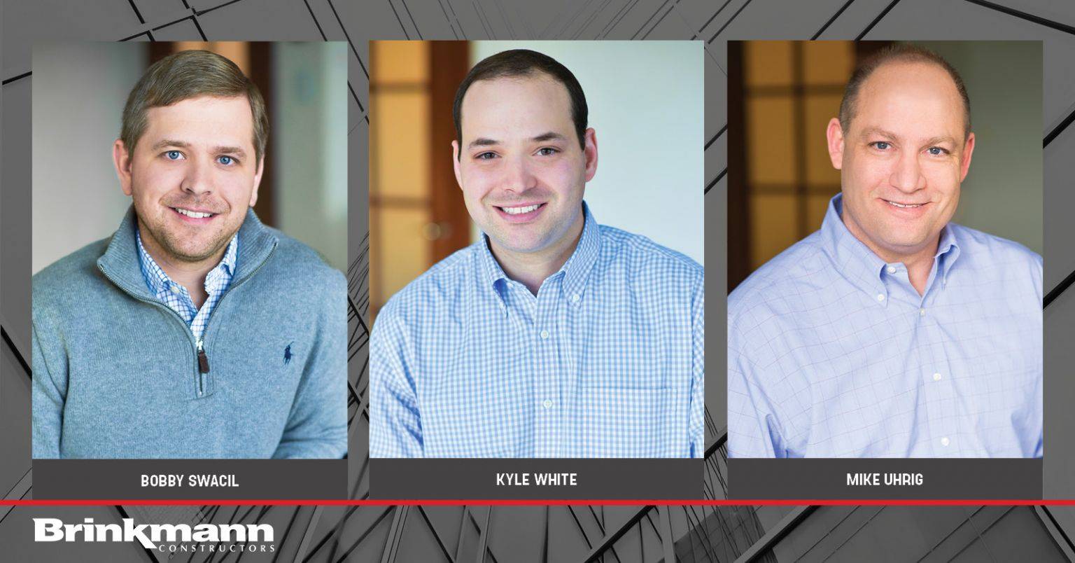 Company News, PeopleBrinkmann Constructors is pleased to announce the promotions of Bobby Swacil, Kyle White, and Mike Uhrig to Project Director. Each of these employee-owners have long-standing tenure with Brinkmann and have shown their ability and desire to help move forward Brinkmann’s vision, mission, and core values. Congratulations to each on their well-deserved promotions.