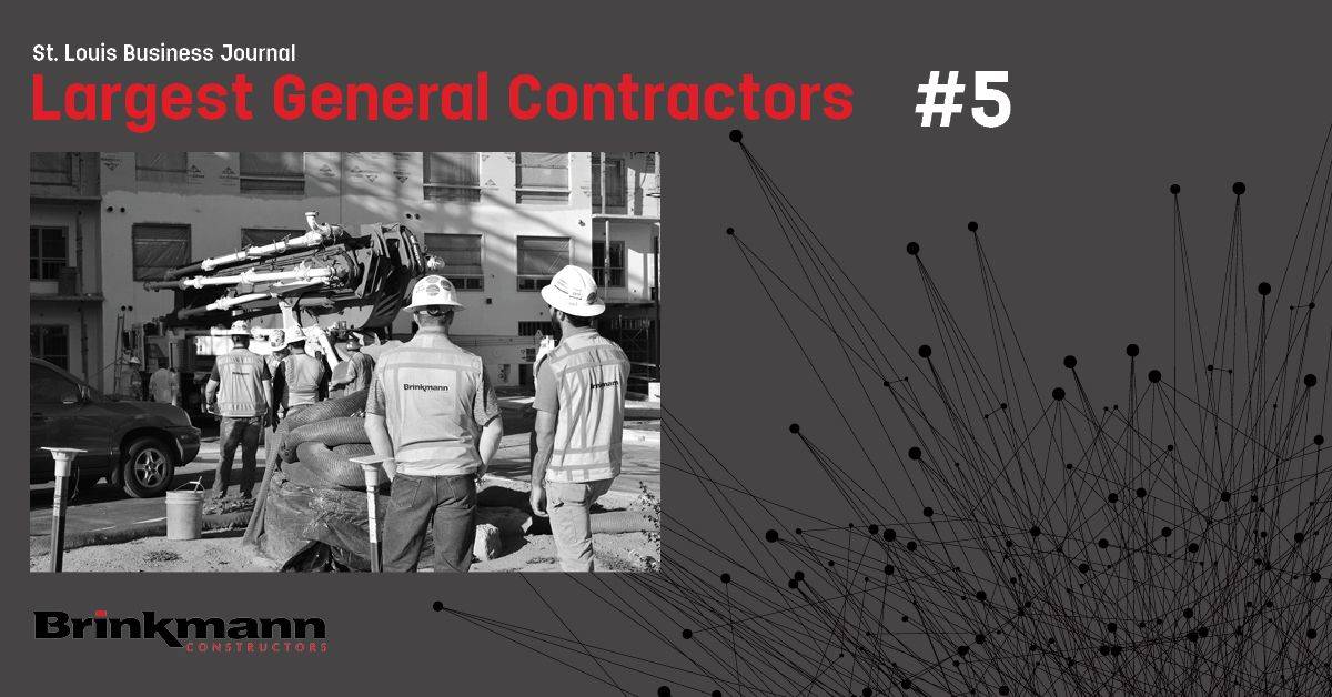 Brinkmann Constructors was named one of St. Louis’ Largest General Contractors by the St. Louis Business Journal! Our 36-year-old construction company was ranked number five on the list of 25 of the area’s largest general contractors, with a 2019 company revenue of $600 million. We are proud to deliver insight beyond measure to not only the St. Louis area, but nationally as a leader in the construction industry.