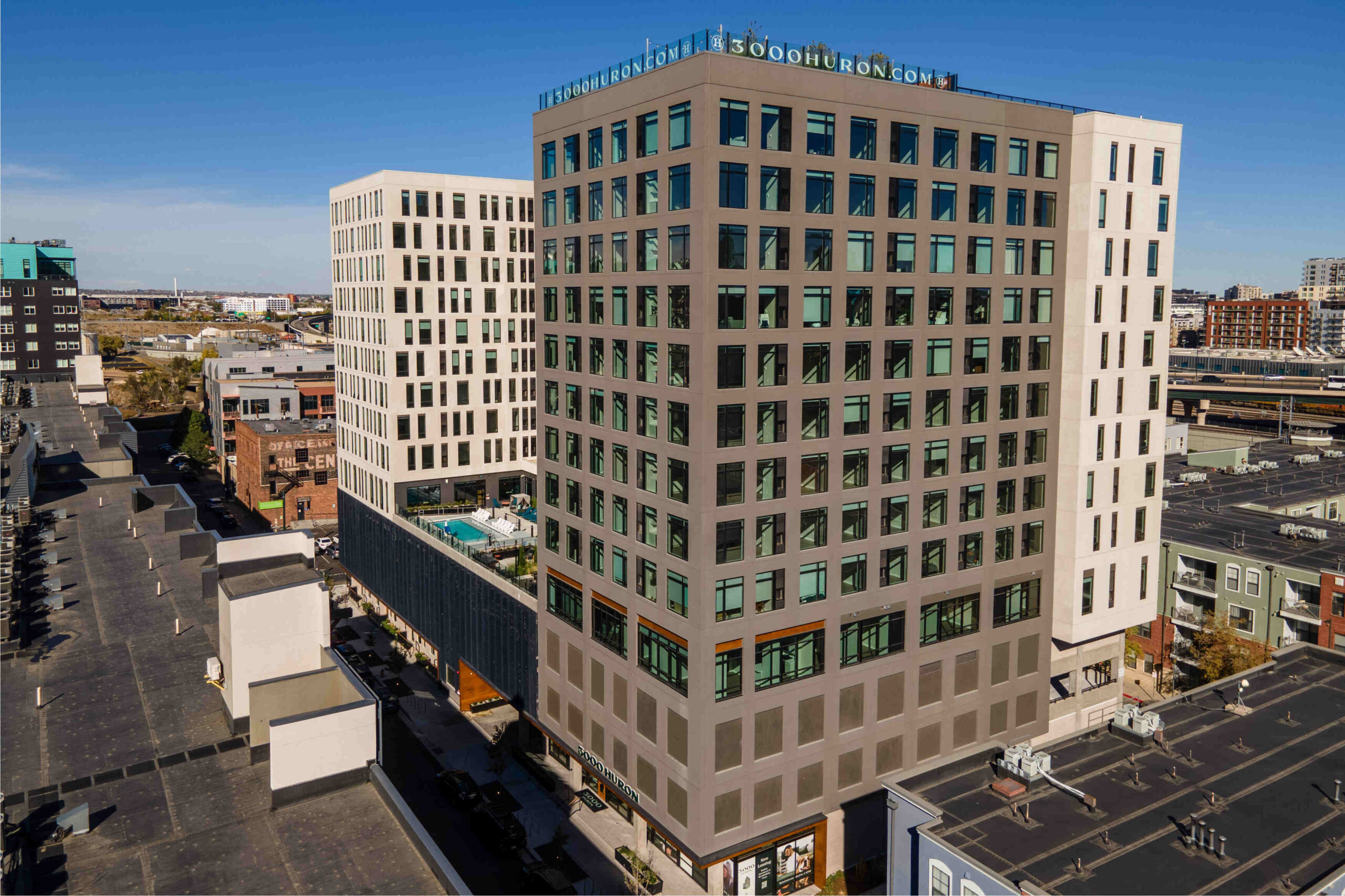 3000 Huron is 14-story high-rise apartment complex situated in the heart of downtown Denver, strategically located near Coors Field. This urban residential development transforms a former warehouse site into a modern community serving the growing demand for downtown living.