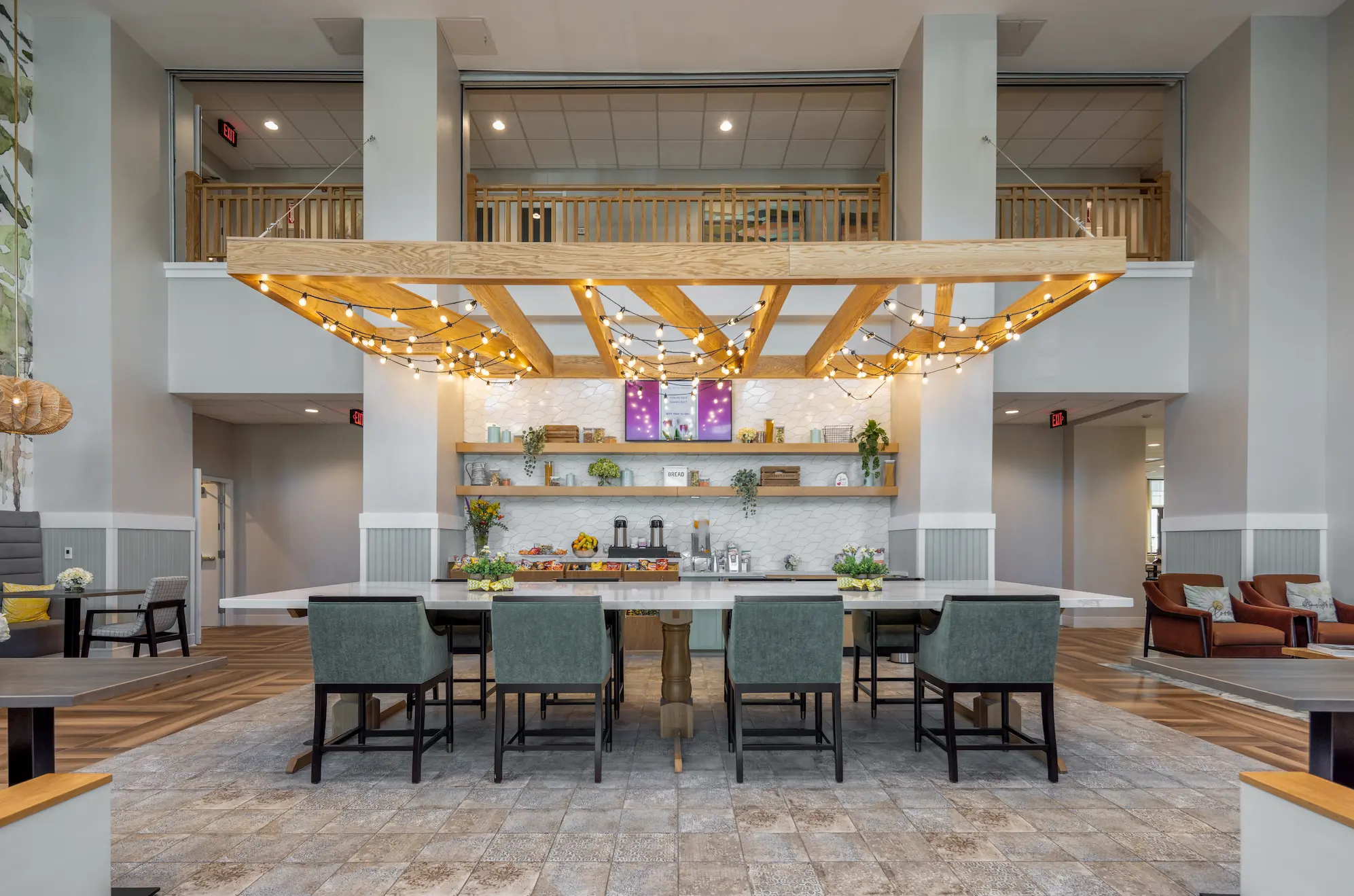 The community elevates senior living standards through boutique-inspired accommodations and premium amenities designed to enhance residents’ quality of life. Standout features include a cutting-edge golf simulator for year-round recreation, thoughtfully designed activities areas that foster community engagement, a comprehensive library for quiet reflection, and a fully-equipped fitness center promoting active aging. Outdoor recreation areas provide residents with natural gathering spaces, while the on-site salon ensures convenient personal care services.