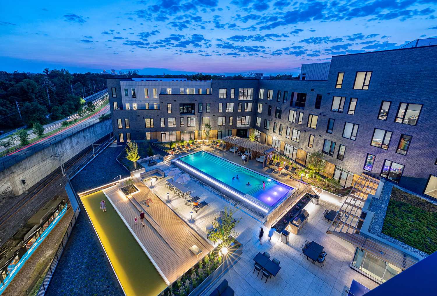 Our innovative thinking extended beyond the buildings themselves. Rather than incurring the substantial expense of relocating a high-voltage utility line, we designed an alternative basement layout that preserved all parking spaces while avoiding the obstacle entirely. By changing the garage access point to grade level and implementing internal ramping for below-grade access, we maximized parking efficiency and reduced the below-grade footprint—all while maintaining full parking capacity. This creative redesign resulted in an additional $725,000 in project savings.