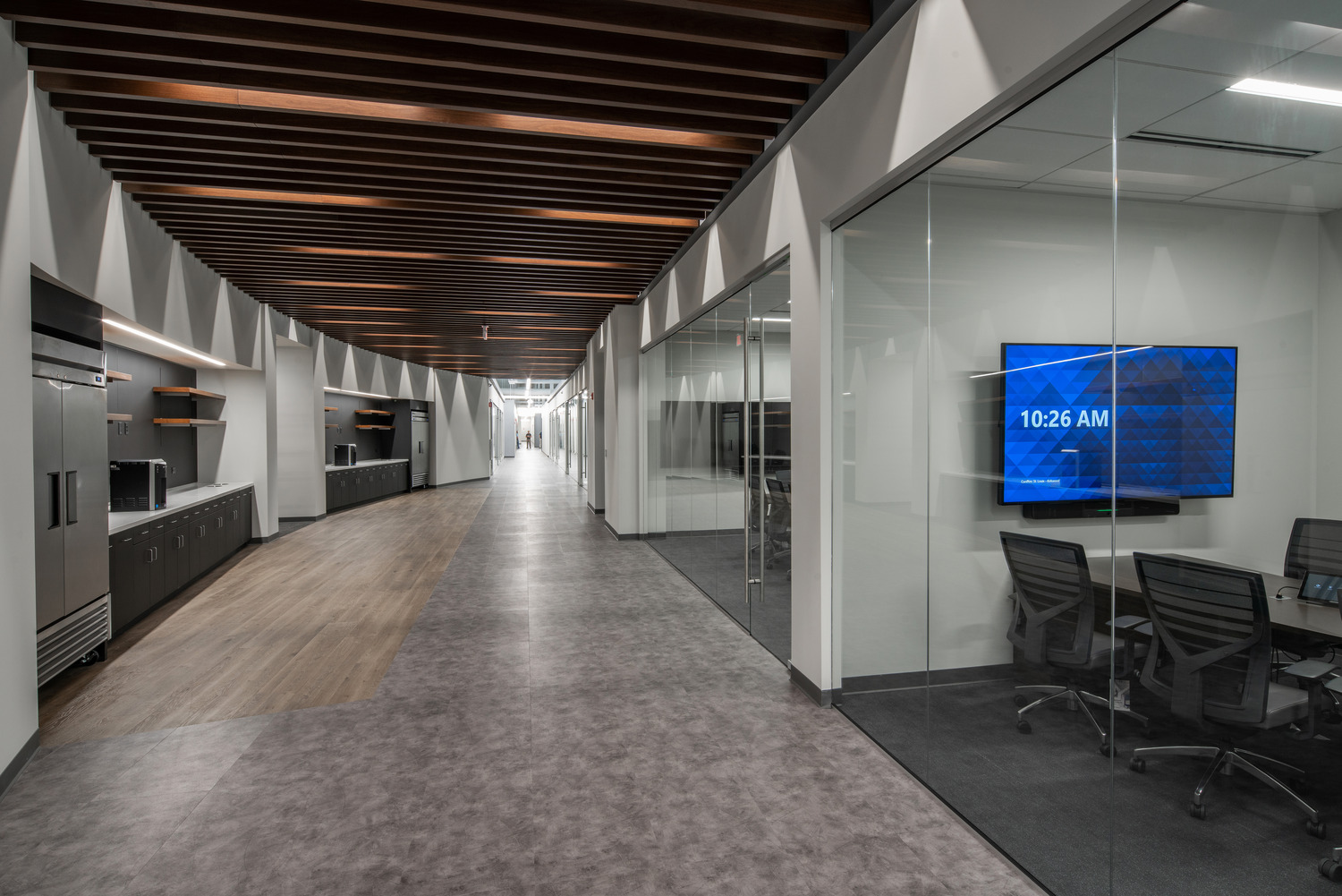 Our team completed the project two weeks ahead of schedule. This achievement required exceptional coordination with local authorities having jurisdiction to secure temporary certificates of occupancy for each phase, enabling Leonardo DRS to begin furniture installation before building completion.