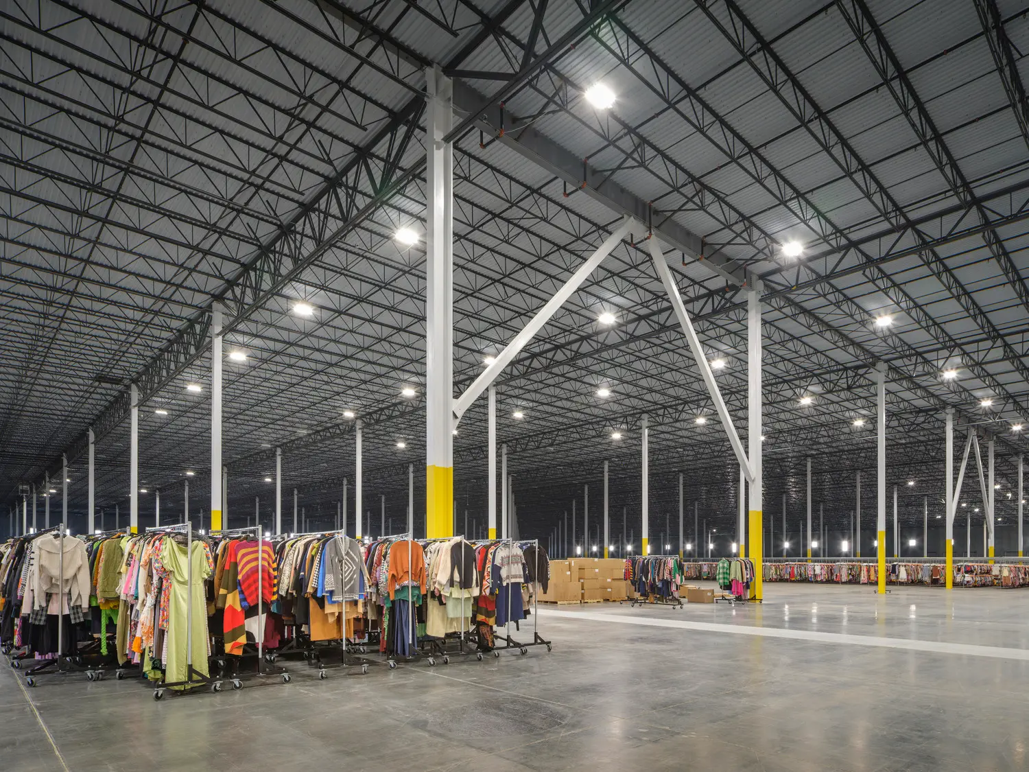 The facility incorporates sophisticated systems essential to Nuuly’s clothing rental business: