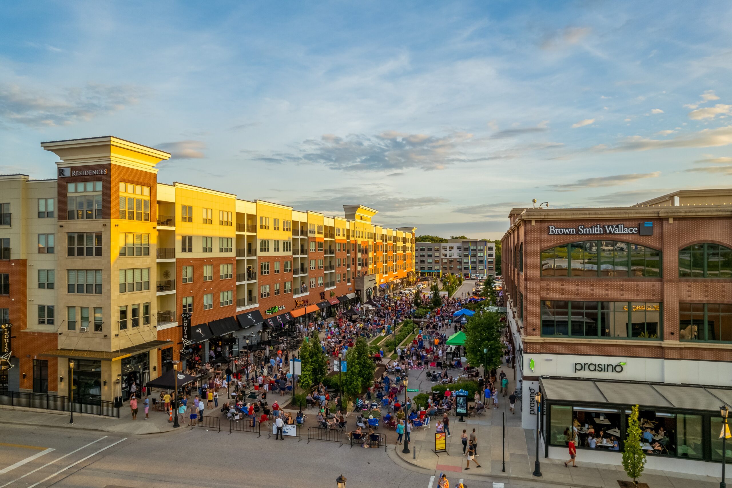 The thoughtful design of Streets of St. Charles creates a vibrant, walkable district where business professionals and shoppers converge. This integration of commercial and retail spaces fosters a dynamic environment that serves both professional and community interests, with competitive lease rates available for businesses seeking a premier location.