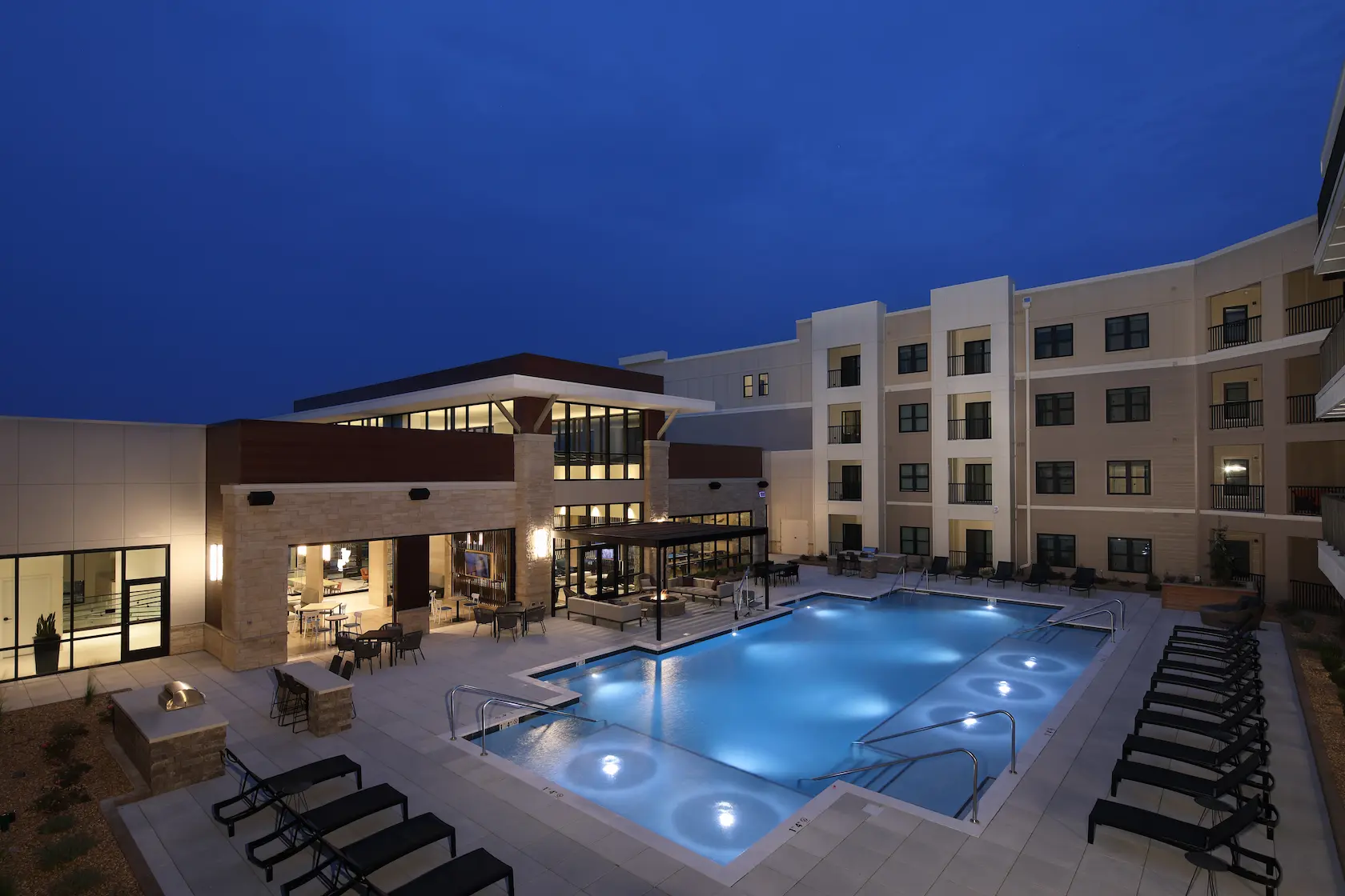 Summit at West Pryor is a sophisticated 394,000-square-foot mixed-use development featuring 237 apartment units and 15,000 square feet of first-floor retail space. The four-story wood-framed structure sits atop one story of below-grade structured parking, creating an efficient and attractive living environment that serves both residential and commercial needs.
