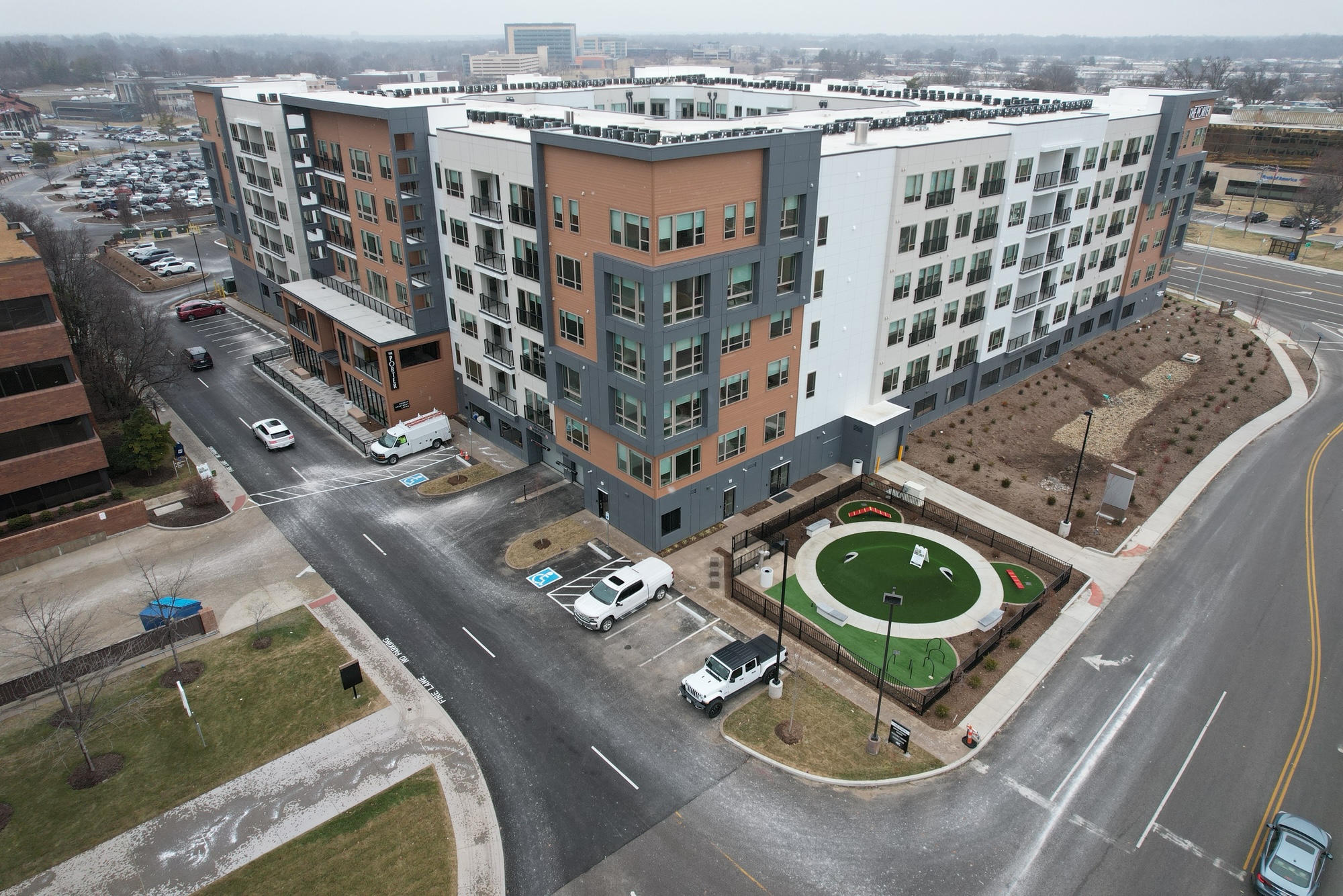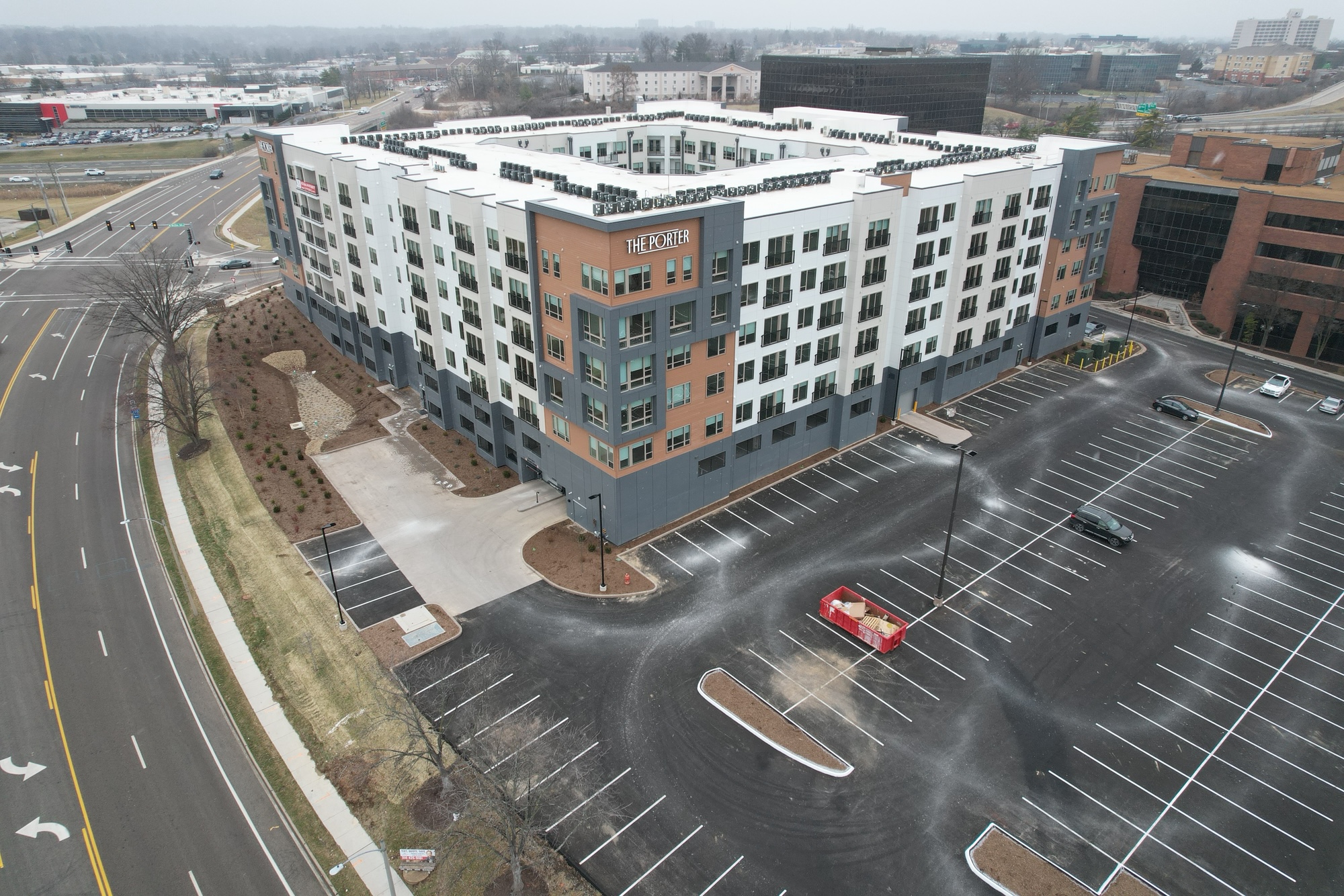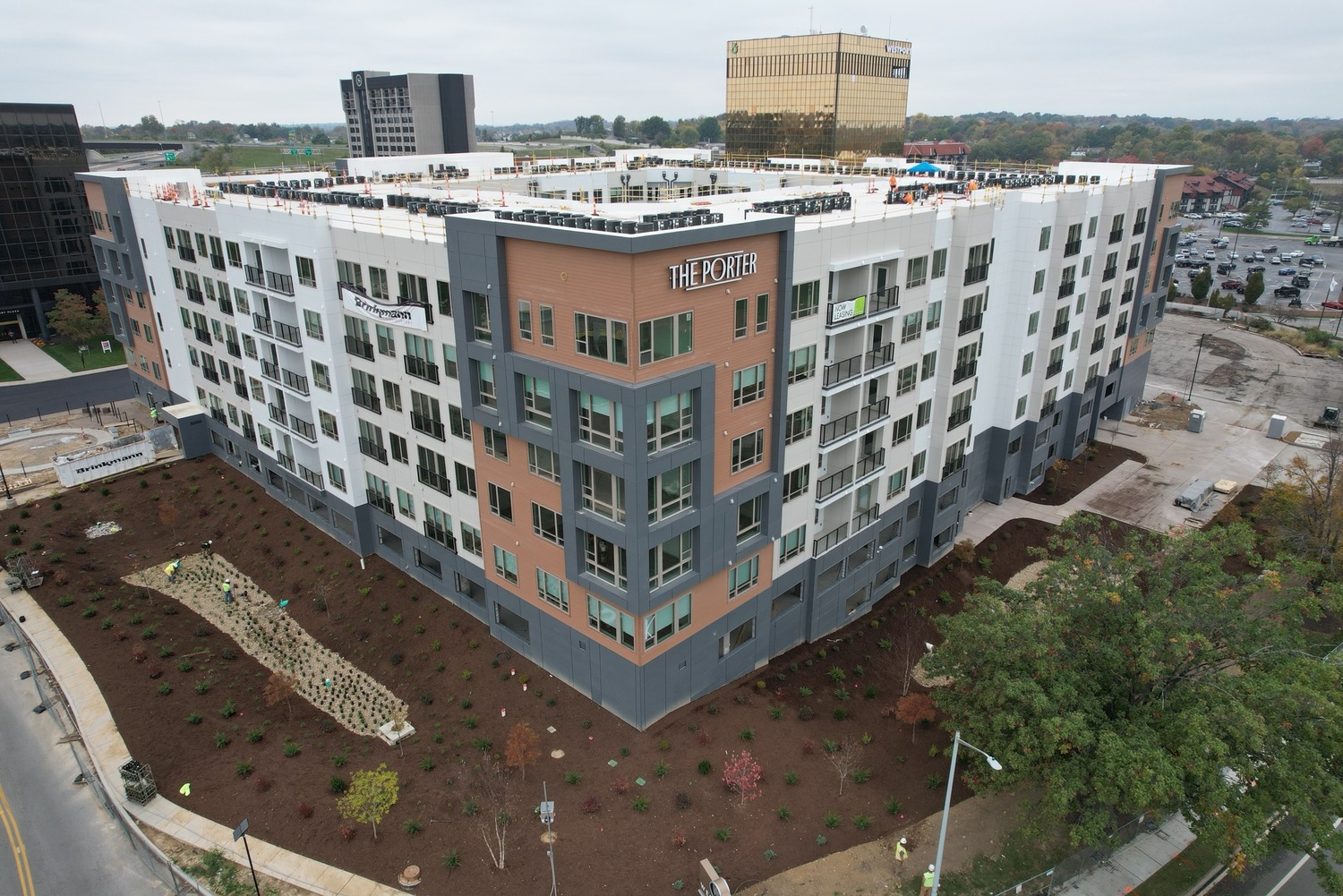 The Porter is a luxury 376,000-square-foot multifamily community located within Westport Plaza, a vibrant 42-acre entertainment district. This five-story wood-framed development features 255 residential units over two levels of garage parking, creating an upscale living environment in one of St. Louis’s premier mixed-use destinations.